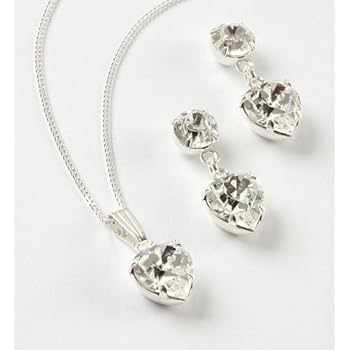 LJ Designs Beautiful Crystal Heart & Tiffany Set - Silver Finish - Swarovski Crystal