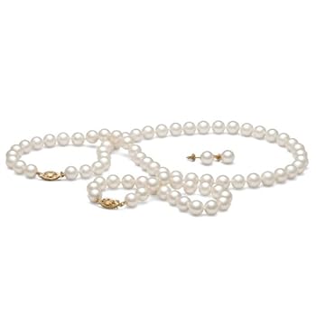 AAA Quality, 7.5-8.0 mm, White Freshwater Pearl Set, 18-inch Necklace, 7.5-inch Bracelet, Earrings, 14k White Gold. Reviewed by Bobby P. Rating: