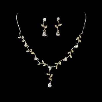 Gold Cubic Zirconia Vine Bridal Wedding Necklace Earring Set
