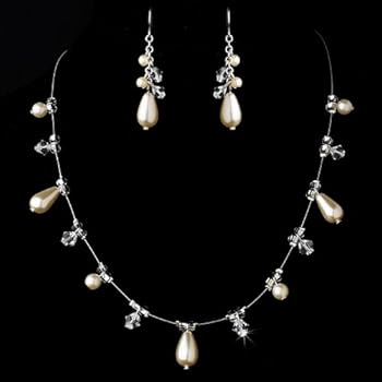 Silver Ivory Bridal Wedding Necklace Earring Set. Reviewed by Victor F. Rating: