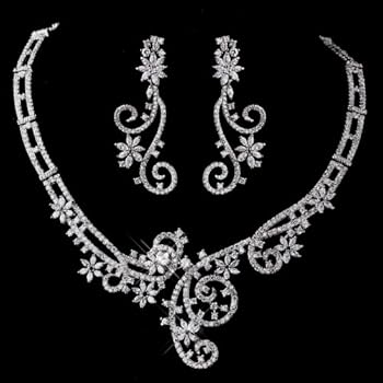 Silver Clear Cubic Zirconia Bridal Wedding Necklace & Earring Set. Reviewed by Milner O. Rating:
